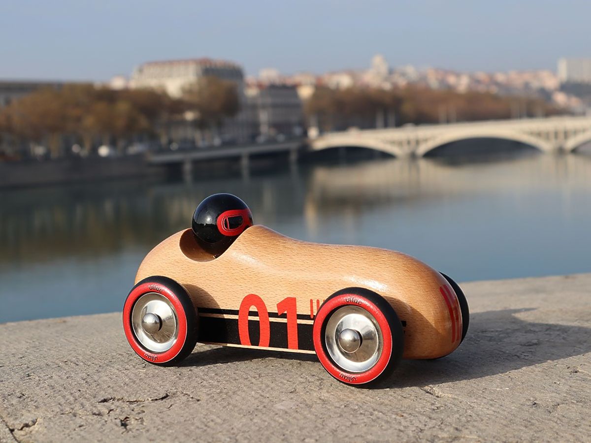 An extraordinary toy car with smooth aerodynamic shapes in a unique design, intended for play as well as an attractive interior accessory or collectible piece. Playing with the car allows a child to use many skills: fine motor skills, dexterity, imagination, and creativity. They can mimic engine or siren sounds, park in a garage, or go for a drive. Playing with other children or family members teaches sharing, cooperation, and imitation, thereby developing important social skills. The car is made from solid beech wood, hand-painted with safe colors using the traditional dip-painting process. Made in France, it is delivered in a printed box. Main features: develops fine motor skills and supports proper grip, unique design and craftsmanship, made of solid beech wood, unique hand painting, packaged in an attractive box, suitable as a gift, collectible piece, or interior accessory, made in France.