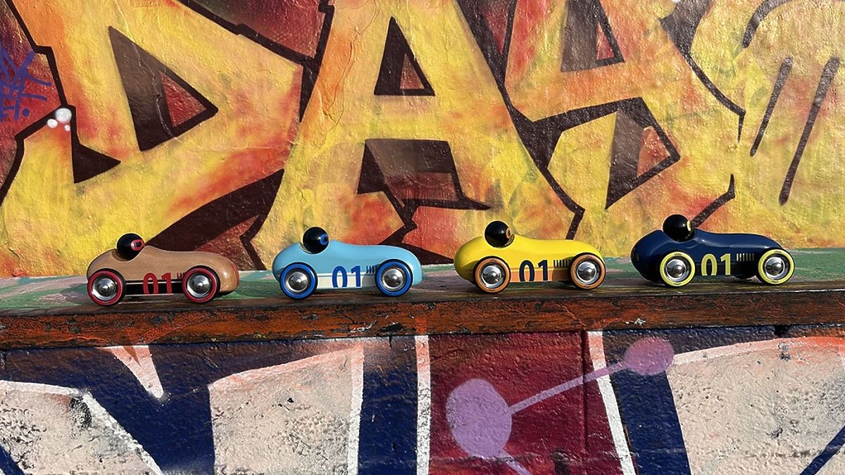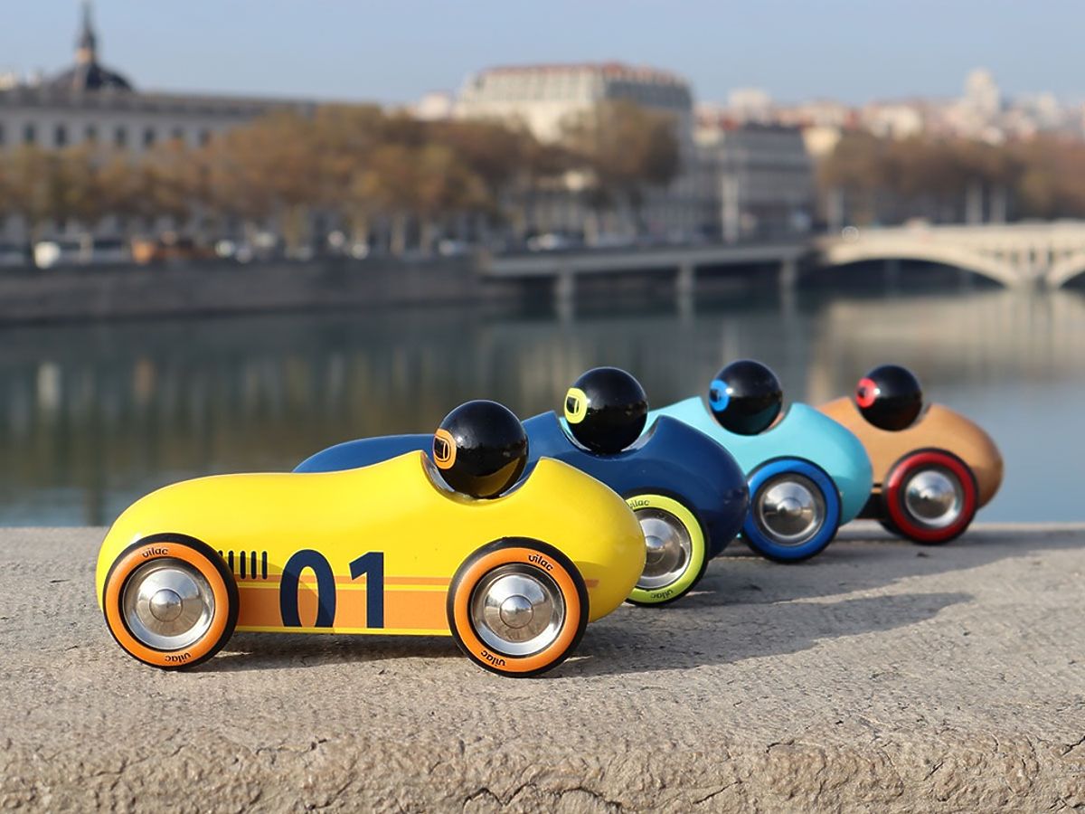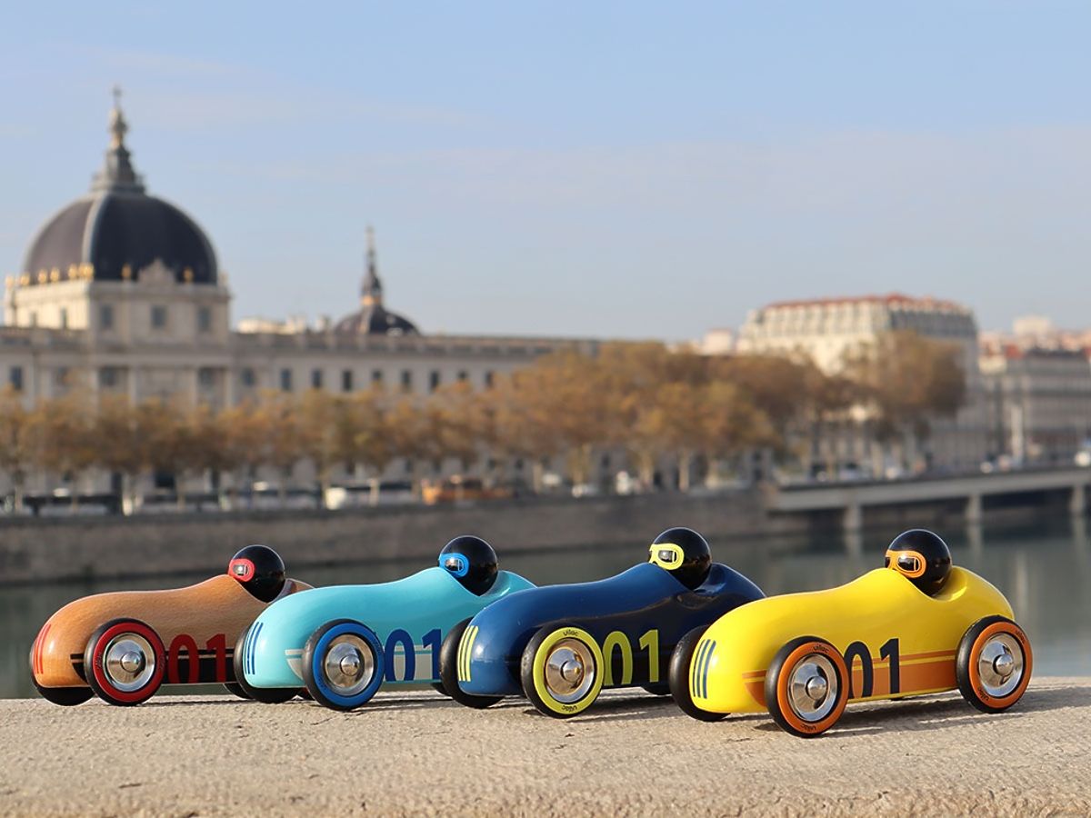 An extraordinary car with rounded aerodynamic shapes in a unique design, intended for play as well as an attractive interior accessory or collectible piece. Playing with the car allows the child to use many skills: fine motor skills, dexterity, imagination, creativity. They can mimic engine or siren sounds, park in a garage, or go for a drive. Playing with other children or family members teaches sharing, cooperation, and imitation, thereby developing important social skills. The car is made from solid beech wood, hand-painted with safe colors using the traditional immersion process. Made in France, delivered in a printed box. Main features: develops fine motor skills and supports proper grip, unique design and craftsmanship, made from solid beech wood, unique hand painting, packaged in an attractive box, suitable as a gift, collectible piece, or interior accessory, made in France.
