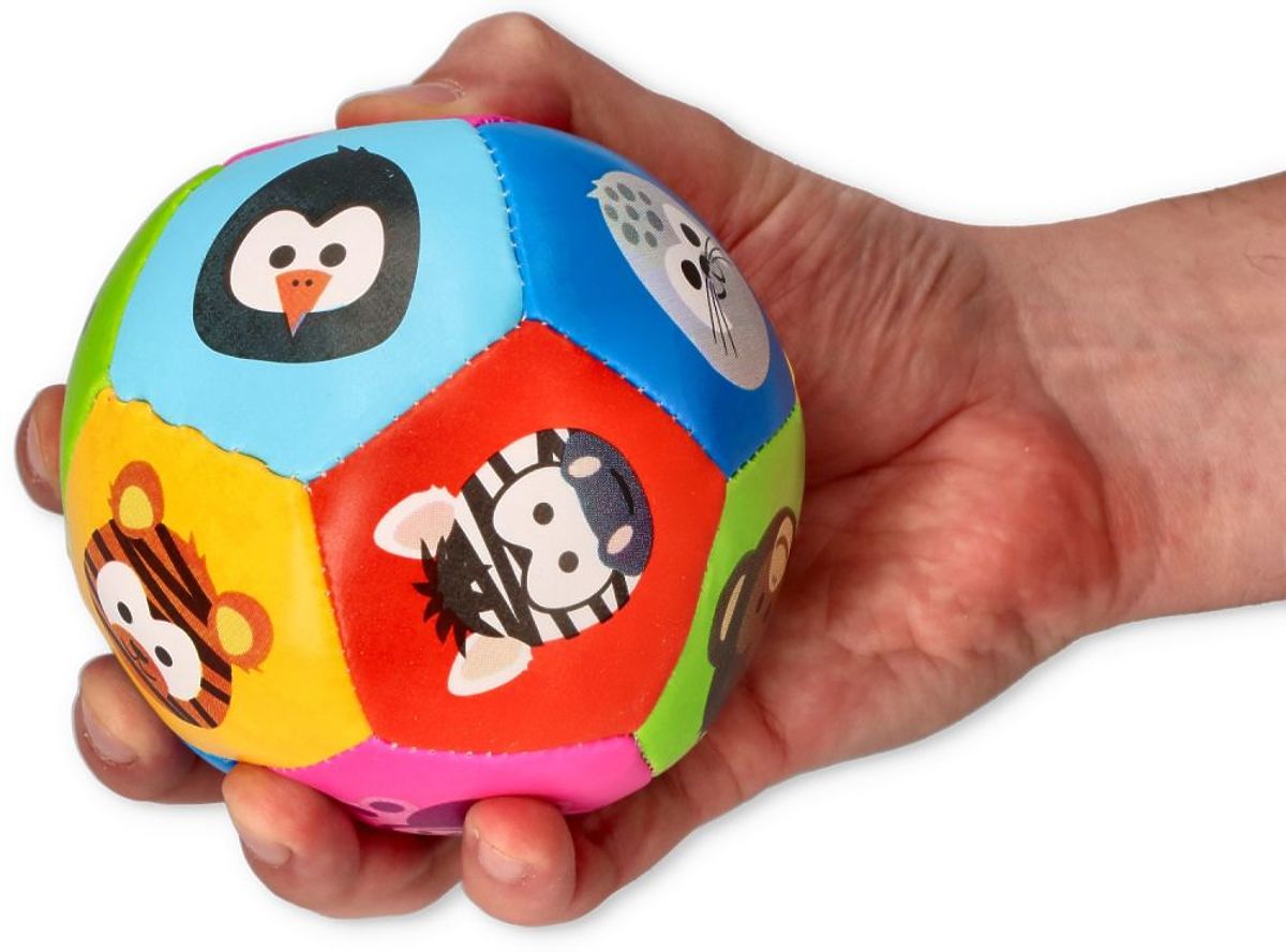 The colorful ball with animals is a simple, classic toy that everyone knows and loves. Despite its simplicity, it develops motor skills and encourages activity. Its size is ideal for small hands - a child can squeeze, compress, and throw it. Playing with the ball helps the child learn to distinguish colors and develop hand motor skills. Thanks to the animal pictures, the child learns their names in an interesting way. Playing with the ball teaches the child cooperation and healthy competitiveness. The durable polyester fabric is exceptionally soft to the touch, ideal for first ball games.