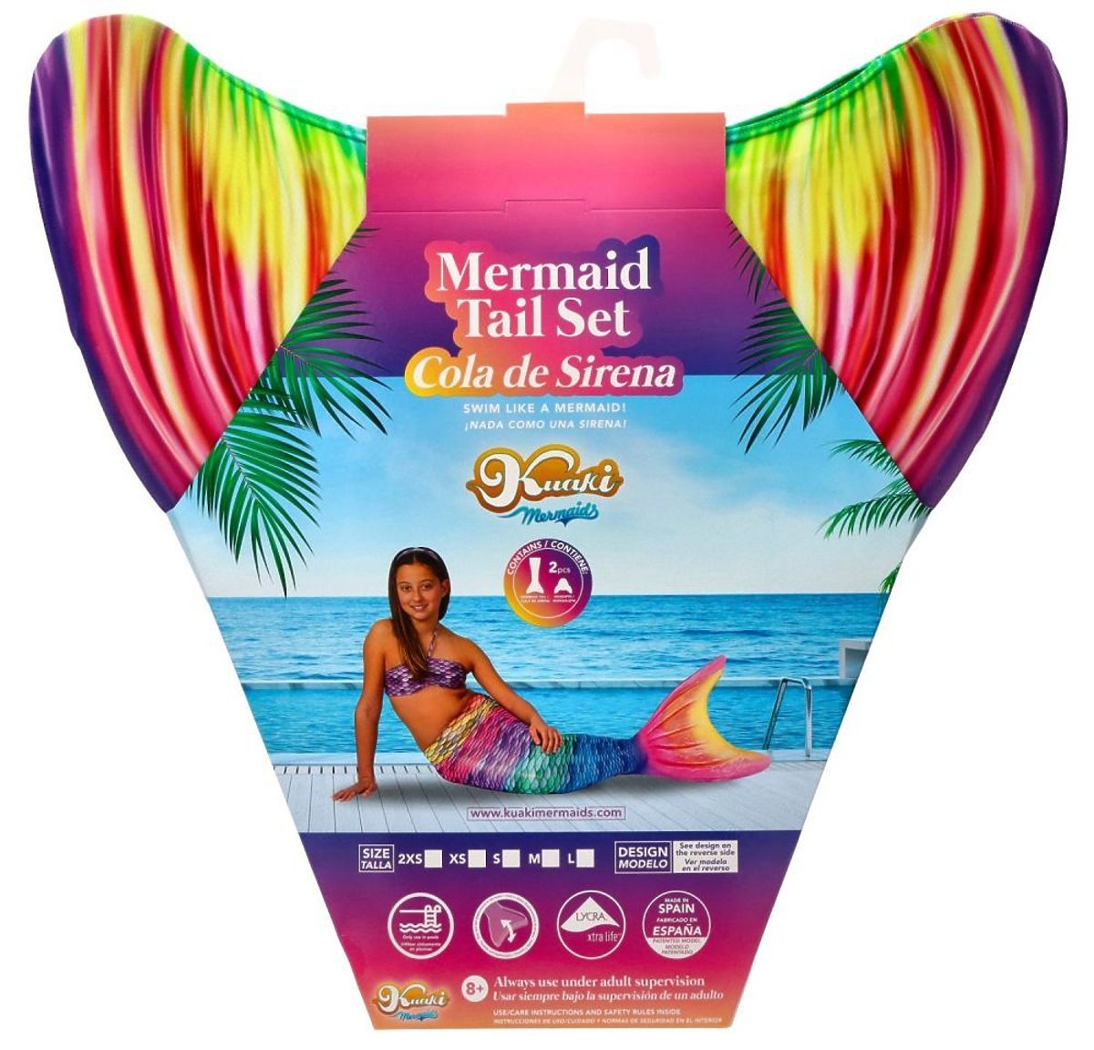 Sea tails are available in many colors (also for boys) and in versions with or without a bikini top. The two-piece set includes: