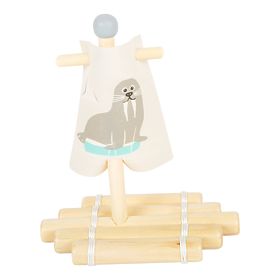 Water Toy - Walrus Raft. Ahoy, Captain! This wooden raft is perfect for little sailors. They can push it around in the water and enjoy every bath time! Whether in the bathtub, at the pool, or by the sea – once this toy hits the water, nothing can stop it. Wooden water toys are a more eco-friendly alternative to plastic and rubber toys. For longer toy life, make sure to dry it thoroughly after removing it from the water. Main features: suitable for use in the bathtub, at the pool, or by the sea, the toy encourages imagination, powered by the wind when sailing in nature.