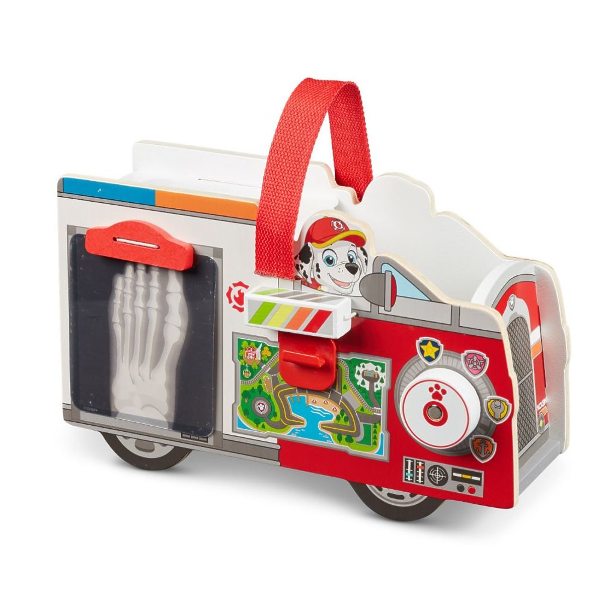 WARNING! Vehicle on signal, make way for Marshall :) Help the brave firefighter set off on a rescue mission with a rescue vehicle equipped with comprehensive first aid tools. Made with attention to detail, this solid toy car from the well-known toy manufacturer Melissa and Doug is sure to delight your children. The car does not have rotating wheels; it is entirely made of wood. The details from the Paw Patrol story and the fact that the car has no sharp edges and all the elements of the first aid kit have rounded ends deserve attention. You can safely give this toy to your child.